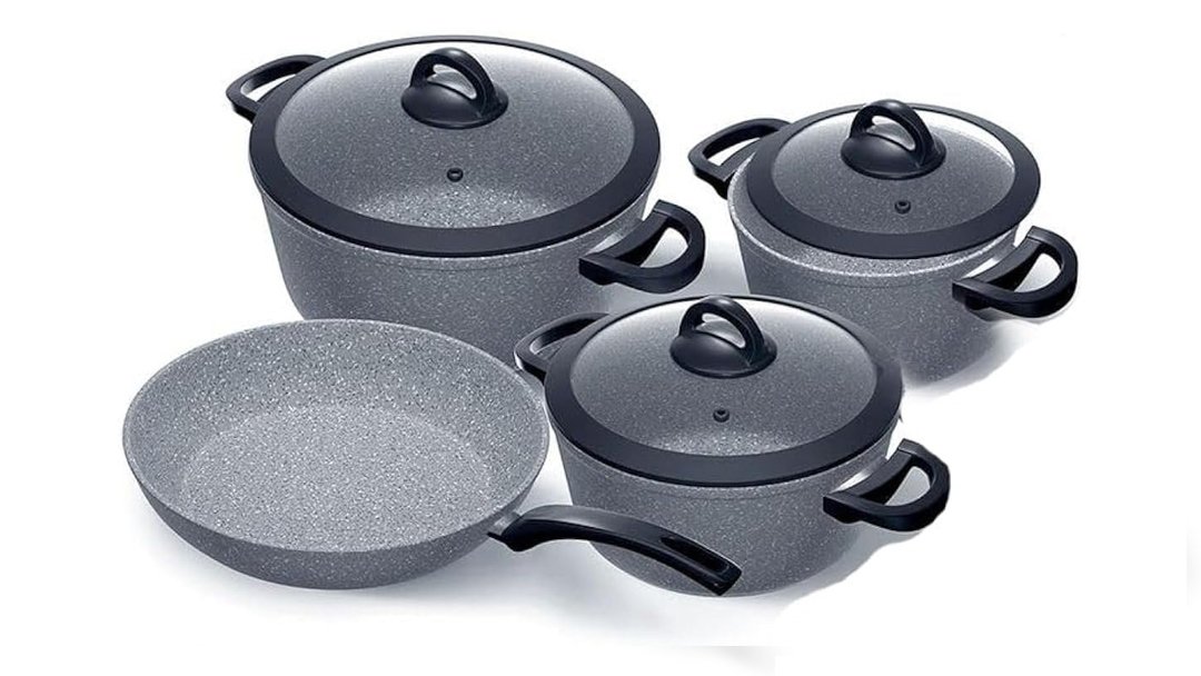 7 Pieces Set Bio Granite ( 20-22-24 ) + fry pan 24 cm-Gray