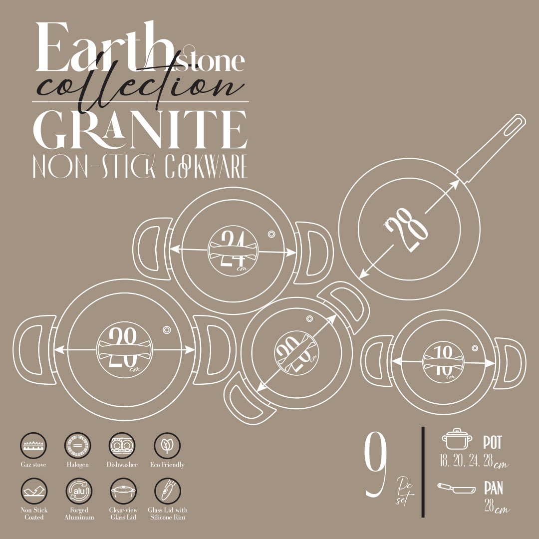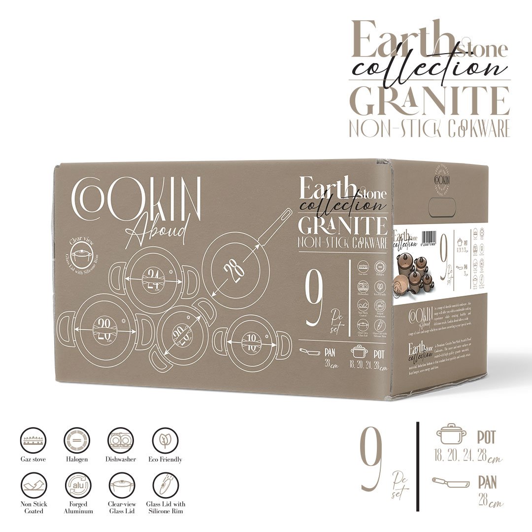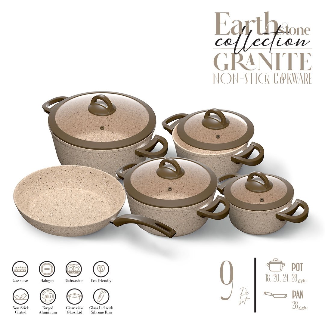 9 Pieces Set Bio Granite ( 18-20-24-28 ) + Fry Pan 28 cm-Beige